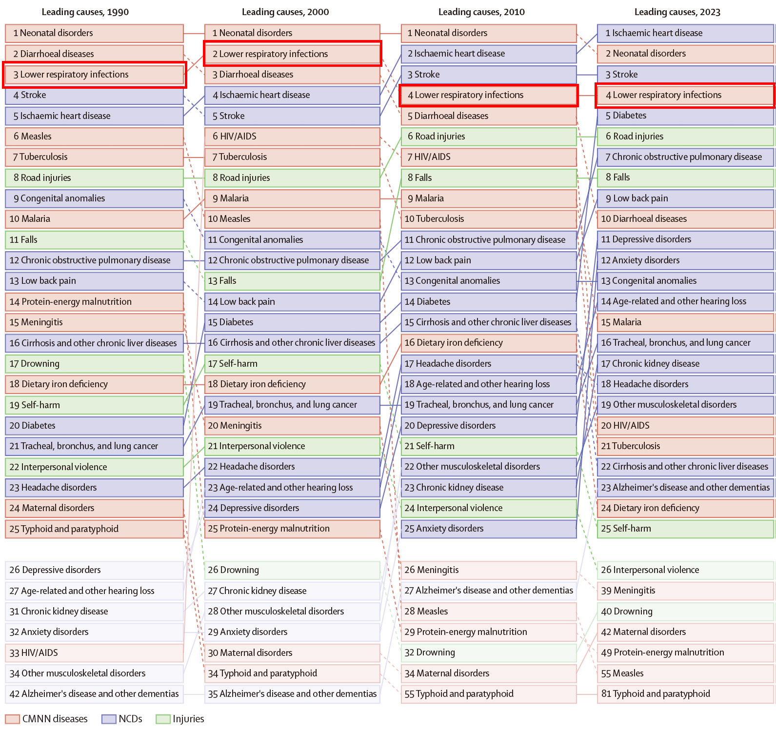 [2] GBD 2023 Lower Respiratory Infections and Antimicrobial Resistance Collaborators. Global burden of lower respiratory infections and aetiologies, 1990–2023: a systematic analysis for the Global Burden of Disease Study 2023. Lancet Infect Dis 2025.Published Online December 15, 2025.