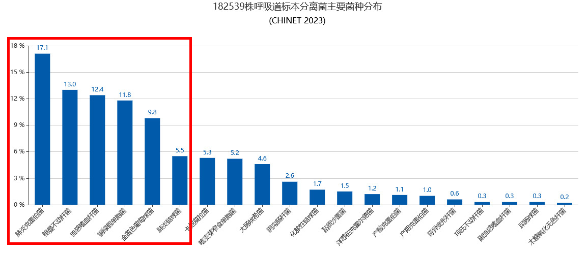 圖4: CHINET2023 呼吸道標(biāo)本分離菌主要菌種分布
