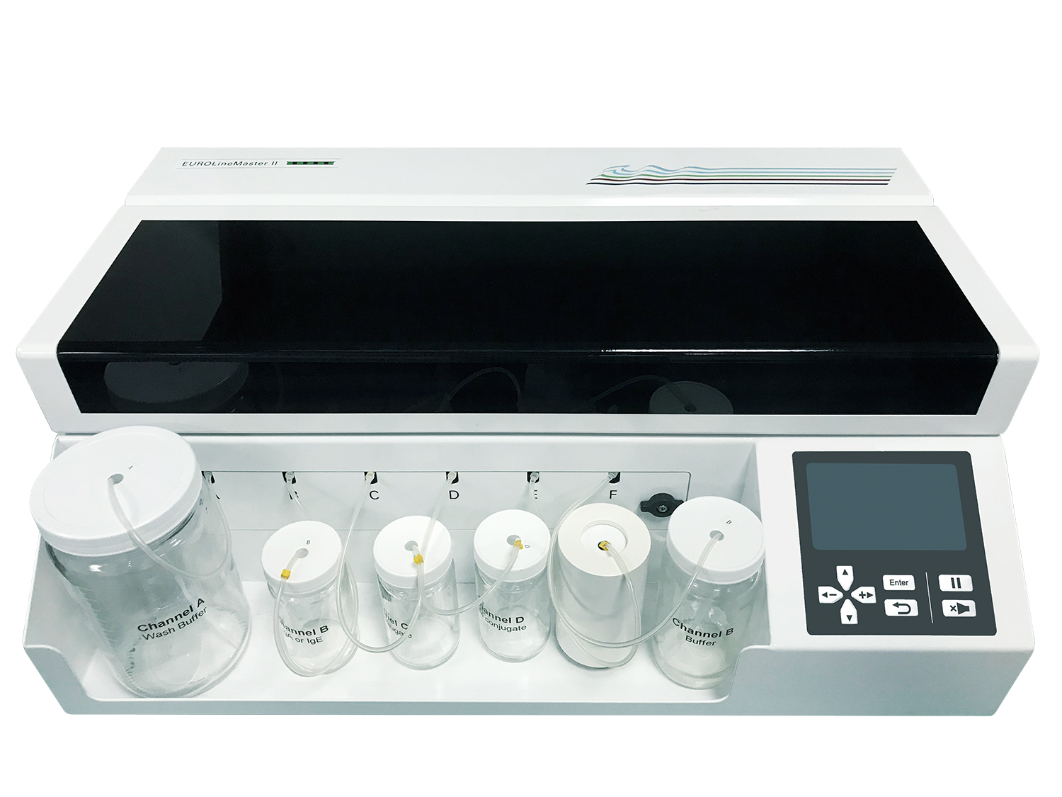 EUROLineMaster Ⅱ是一款針對(duì)免疫印跡實(shí)驗(yàn)的全自動(dòng)操作儀器,設(shè)備執(zhí)行檢測(cè)項(xiàng)目所有的孵育和洗滌步驟,以及試劑的分配。通過配備相應(yīng)的判讀儀和判讀軟件(EUROLineScan)可進(jìn)行結(jié)果判讀,實(shí)現(xiàn)了免疫印跡實(shí)驗(yàn)自動(dòng)化、標(biāo)準(zhǔn)化檢測(cè)操作。適用于所有的歐蒙印跡膜條,在一臺(tái)設(shè)備上即可實(shí)現(xiàn)自身抗體、病原體抗體和過敏原檢測(cè)的組合。