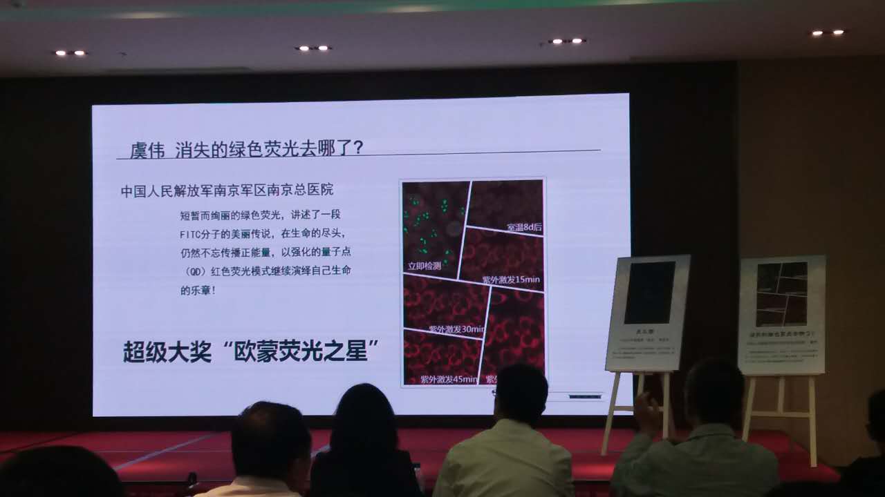 最終,來自南京軍區(qū)總醫(yī)院檢驗科虞偉老師的作品《消失的綠色熒光哪去了?》以及來自中山大學附屬第一醫(yī)院檢驗科曾智杰老師的作品《光之蝶》并列奪得本次大賽的超級大獎“歐蒙熒光之星”!