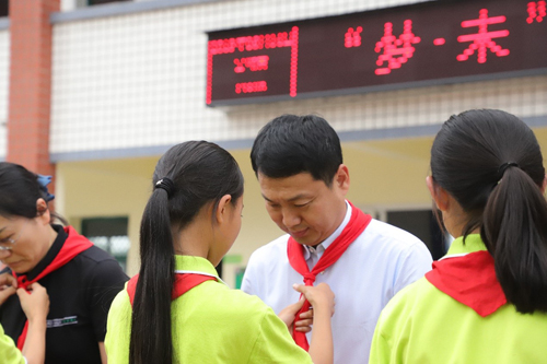少先隊(duì)員代表為領(lǐng)導(dǎo)嘉賓敬獻(xiàn)紅領(lǐng)巾