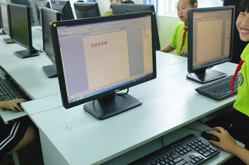 看到自己的名字第一次出現(xiàn)在電腦上,孩子們露出激動(dòng)的笑容