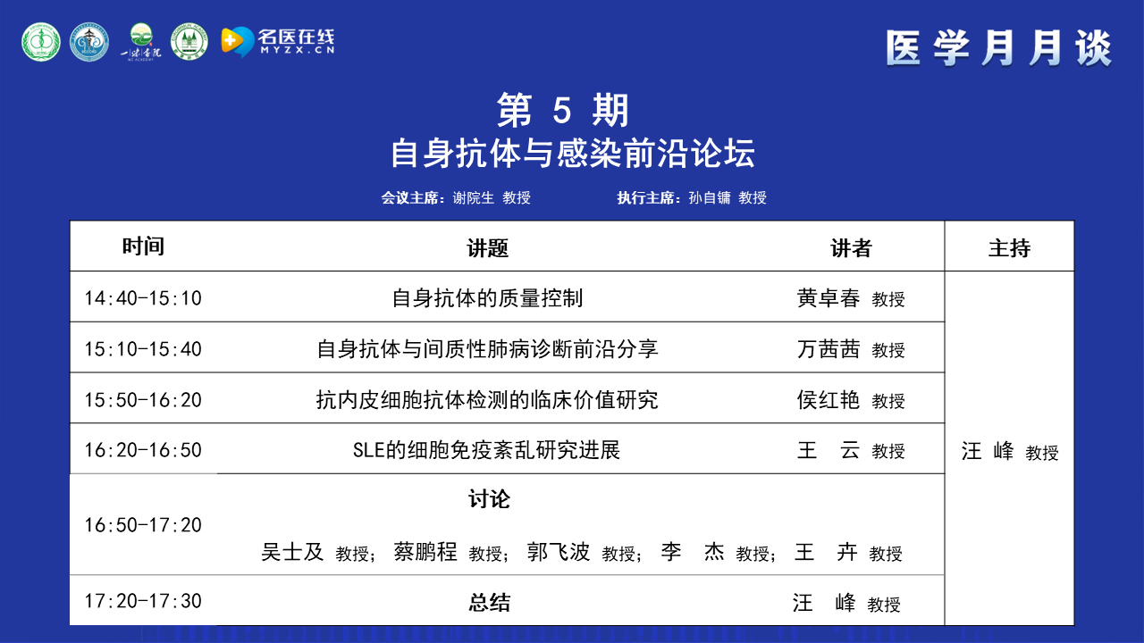 本次論壇特邀多位專家,就自身抗體、感染免疫及風濕免疫等領域分享臨床與科研進展。期待與會同仁暢所欲言、碰撞思想,共同開拓這一充滿機遇的學術疆域,為患者健康事業貢獻力量。預祝論壇圓滿成功!